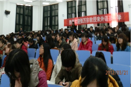 2012年3月21日下午2:30,西亚斯国际学院日语系主任张万宗教授应邀来公司外语系讲学。张教授曾在总参三部四局、二局任军事情报参谋,在日语及日本国家的地理、历史、文化、教育等方面有很深的造诣。