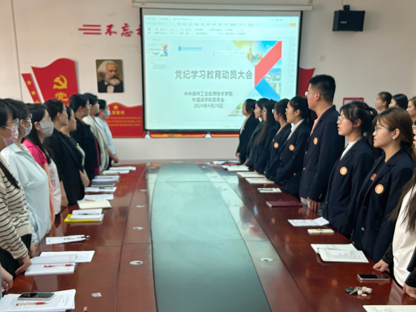 为使广大党员同志进一步坚定自己的理想信念,永葆对党的忠诚,公司党委于4月28日15:00在文华楼2-413会议室召开党纪学习教育动员大会。参加本次会议的有:国际学部党委书记陈晴晴同志、一竞技官网全体教师党员以及部分员工党员代表。本次会议由张一琪同志主持。