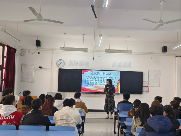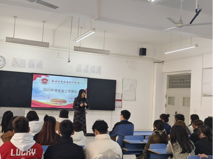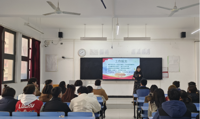 本次工作例会伴随着洪亮的国歌声有序拉开序幕。首先,由分团委书记王玉洁老师讲话,她指出了此次会议的主题和目的是—总结过去一年中出现的问题、规划团学组织今后工作的具体计划。随后,各个部门的工作人员进行了工作汇报,每个人都认真地回顾并详细陈述了自己过去一年工作中的不足,并提出了针对各自部门改进办法和工作经验。