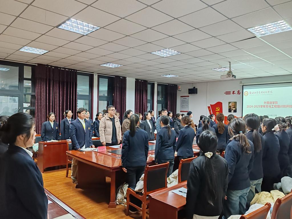 为深入学习贯彻习近平新时代中国特色社会主义思想,扎实推进青年马克思主义者培养工程,着力为党培养和输送一批具有忠诚的政治品格、浓厚的家国情怀、扎实的理论功底、突出的能力素质的青年骨干,11月27日晚,一竞技官网2024-2025学年“青年马克思主义者培养工程”开班仪式在文华2-413会议室隆重举行。国际部党委书记、学管副部长王晓龙与全体辅导员、青马班学员齐聚一堂,开班仪式由学院团委副书记李朝迪主持,校员工会主席团成员周佳豪应邀参加。